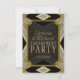 Tema da cor: glamouroso em ouro, ouro e preto, textura de efeito da luz prateada. Estilo: Arte Deco, era ruidosa dos anos 20, energia musical de Charleston. Individual personalizável para cada lado. Este convite ao estilo Art Deco preto e dourado é totalmente personalizável | designs alternativos adequados para casamentos não tradicionais ou para qualquer evento e ocasiões especiais. . O número correspondente da placa de mesa também está disponível