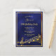 Na frente: Um cartão de convite de festas moderno e moderno para homens. Um fundo azul escuro, azul marinho. A cor azul é irregular. Com uma falsa imagem de ouro e notas musicais, letras coloridas de ouro. Modelos para informações sobre a sua parte. Fundo branco. Dica: Se você não quiser que pareça um cartão postal, clique em personalizar, vá para o verso e remova o divisor e o carimbo de posto.