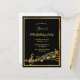 Um cartão de convite de festas moderno e moderno para homens e mulheres. Um fundo preto clássico, com falso quadro dourado e notas musicais, letras ouros coloridas. Modelos para informações sobre a sua parte. Fundo branco. Dica: Se você não quiser que pareça um cartão postal, clique em personalizar, vá para o verso e remova o divisor e o carimbo de posto.