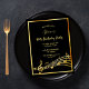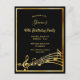 Um cartão de convite de festas moderno e moderno para homens e mulheres. Um fundo preto clássico, com falso quadro dourado e notas musicais, letras ouros coloridas. Modelos para informações sobre a sua parte. Fundo branco. Dica: Se você não quiser que pareça um cartão postal, clique em personalizar, vá para o verso e remova o divisor e o carimbo de posto.