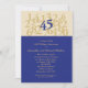 Convite moderno e atraente para aniversário de casamento. Ótimo para celebrar os 45 anos de casamento com estilo. Apresenta um grande número 45 na cor Safira, que é a cor tradicional para este aniversário. Outros números são mostrados em uma cor mais clara para simbolizar os anos que se passaram. Convite perfeito para celebrar este aniversário marcante em casa, num restaurante ou local favorito. Design atemporal e sofisticado. Adicione sua própria mensagem.