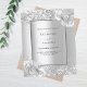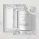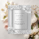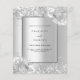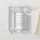 Fundo de aspecto fino prateado decorado com flores, flores e brilho fino prateado, brilhos. Personalize e adicione seus nomes e detalhes da festa. Letras negras. 1 folha = 1 convite impresso de borda a borda.
