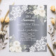 Para um elegante e romântico aniversário de 25 horas, casamento prateado. Um fundo escuro, de aspecto prateado, decorado com flores brancas, rosas, rendas brancas. Personalize e adicione seus nomes e detalhes. 1 folha = 1 convite impresso de borda a borda.