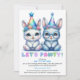 Salto em uma festa de aniversário divertida e na moda com este adorável convite para temas coelhinhos! 🐰 🎈 apresentando dois bebezinhos brancos giros vestindo óculos de sol e chapéus de festa, com sotaques de brilho azul, este convite é perfeito para uma festa de aniversário infantil engraçada e brincalhona. Personalize-o com os detalhes do evento e prepare-se para uma celebração mágica! ✨ 🎂