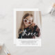 Um simples convite para o terceiro aniversário, com sua foto e a palavra 'três' no topo, em uma letra de estilo caligrafia. Observe que o texto 'três' não pode ser editado, mas você pode editar o resto do texto no design e adicionar sua própria foto. Certifique-se de enviar a foto para a camada inferior no modo design :)