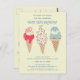 Novo para o Verão de 2024. Nosso cartão-postal de convite "Sorvete, Gritar Que Todos Nós Gritares Feliz 18º Aniversário!" Três cones retrorados de sorvete de aquarela com sorvete vermelho, branco e azul patriótico e aspersores ocupam o palco central acima de seus detalhes de festa de aniversário.