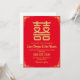 Celebre seu dia especial com este convite de casamento chinês elegante e chico. Com uma mistura de eternos de cores tradicionais vermelho e dourado, este convite certamente impressionará seus convidados. O intrincado design incorpora o icônico símbolo de dupla felicidade, um símbolo de amor e felicidade na cultura chinesa. Esta reviravolta moderna em um design clássico vai adicionar um toque de sofisticação ao seu casamento. Perfeito para casais que buscam uma celebração inspirada na Ásia que seja elegante e memorável.