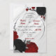 elegantes flores pretas e vermelhas com cinzas folhas convite para casamento Os detalhes da brilha são simulados