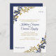 Este belo convite para o casamento contém videiras refinadas em azul-marinho e ouro. A cor da videira superior é definida em azul marinho, mas você pode alterá-la para qualquer cor que quiser alterando sua cor de fundo! Você também pode alternar a videira de baixo de ouro para fazer dois tons de azul. **COMO ALTERAR A COR DO DESIGN: 1) Clique no botão "Personalizar" ou "Personalizar" ou "Editar". 2) Escolha uma nova cor de fundo.