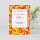 Design brilhante, brilhante e sazonal de folhas laranja, vermelha, amarela e dourada. Colorida, moderna e moderna, fácil de personalizar com seus próprios nomes e detalhes da cerimônia de casamento.