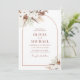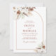 tema do casamento outono de terracotta do arco moderno com grama pampas. O texto e as cores podem ser editados.