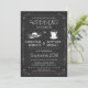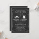 Convites para Casamento em Chalkboard — Chapeau sinamay bonito para a noiva e chapéu bonito para o noivo, com roldanas festivas e tipografia rustica de rico faz um convite memorável para chás de casamento em preto e branco. Adicione os nomes e as informações de evento neste modelo fácil de usar. A tipografia do estilo "chalé" e "letterpress" elegante pode ser modificada para o seu tema de casamento retrô formal ou semiformal, perfeito para casamentos modernos modernos modernos modernos modernos, com um toque divertido de encanto sofisticado para a noiva e noivo tradicionais. Entre em contato conosco para obter ajuda com a personalização se precisar de espaço adicional para os detalhes do casamento.