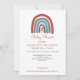 Um arco-íris de Natal, adorável e vibrante, num estilo vermelho e azul neutro em termos de gênero. Simples e doce, com um padrão Papai noel de arco-íris de Natal no fundo do convite. Um estilo perfeito para qualquer gênero, com cores de Natal. Um convite perfeito para quando o bebê chegará logo antes ou durante o Natal. Tendy estilo arco-íris com capricho.