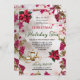 Belo convite para o chá de férias com poinsetos vermelhos, bagas de inverno sobre uma paisagem de inverno, e raposa ártica ao contrário. Se você não quiser que o Menu se inverta, basta apagar o Título do Menu e os Itens do Menu no verso.