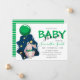 Um Chá de fraldas de balão Um coelho bebê flutuante personalizado para um pouco amado. Crie e personalize rapidamente o seu convite verde e branco para Chá de fraldas de balão. Clique no botão "Personalizar!" para alterar o tamanho do texto, a cor do texto, o estilo da fonte e muito mais!