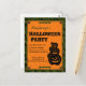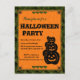 Este convite para cartazes de Halloween apresenta uma pilha de abóboras pretas, cercadas por vinhas e folhas verdes de abóbora, pequenas aranhas pretas nos cantos e uma corda de reluz de ouro que enquadra tudo. Todos os detalhes podem ser facilmente personalizados.