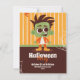 Um modelo de convite com um personagem zombie fofo. Um convite para uma festa com uma ilustração de estilo plano para o Halloween.