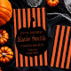 Chegou a estação assustadora com este belo convite de Dia das Bruxas preto e laranja. Um plano de fundo distribuído único acentua uma abóbora preta completa com um texto fofo e assustador que é perfeito para qualquer festa de aniversário, chá de panela, chá de casamento ou festa de fantasia!
