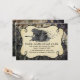 O antigo convite para festas de Halloween feito em um negro desolado. Gráficos de uma área de texto em formato preto e trabalho de arte de uma bruxa voadora decoram a parte frontal do convite. Personalize o texto branco para a festa All Hallows Eve.