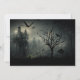 Floresta escura e sombria com morcegos e bruxas, convite para festa de Halloween. Personalize este convite.
