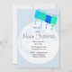 Festival de lua e o festival de outono-Médio. Um design com a Lua com lanternas e flores coloridas e pastéis. A cor principal é azul com uma lua branca grande. Altere as informações do convite para as suas próprias informações personalizadas para o seu convite de festas pessoal do Festival de Lua.