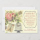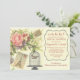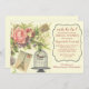 Convite com tema romântico, com rosas, lírio do vale e flores de hydrangea acompanhado de um cartão de posto com a Torre Eiffel e um selo postal de safra. O destaque também é um pássaro em um gabinete e um painel decorativo para sua personalização.
