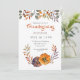 Elegante convite para o Friendsgiving com folhas de outono e abóbora em laranja queimado, amarelo e roxo em aquarela. Personalize o texto, estilo de fonte, cor e tamanho clicando no botão azul personalizar.