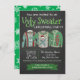 Convite de festas de Natal de suéter feio com três suéteres engraçados e feios em um quadro e fundo de flocos de neve. Você pode personalizar facilmente esses convites de festas de Natal de suéter feio e divertido para o seu evento simplesmente adicionando seus detalhes.