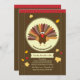Esse peru caprichoso, com um fundo marrom de folhas caindo e uma borda vermelha rendada no topo, é uma maneira divertida de convidar os convidados para a sua mesa de Ação de Graças.