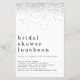 Convidado de Luncheon de Chá de panela de Prata para Literação. Um tamanho maior de 5,5" x 8,5" a um preço orçamentário, em um STOCK CARD SEMI GLOSS de 110 lb, excelente de convites, aproximadamente na mesma espessura de um cartão postal, ou um estoque LINEN elegante de 110 lb - para um luxo, ligeiramente mais fino, com um valor de excelente. OBSERVE QUE OS ENVELOPES OPCIONAIS SÃO UM POUCO MAIORES EM TAMANHO A 6,75" x 9" aprox. Este alternativo de tamanho de orçamento também está disponível em outras opções de papel. O papel FELT de 100 lbs é colorido por buff, NÃO branco, então adiciona um toque rústico. O estoque de papel MATTE de 80 lb é branco brilhante, para impressão nítida, excelente para seus menus e programas, enquanto o papel SATIN de 80 lb é fino e leve, ideal para gabinetes. Muito espaço em branco para um estilo contemporâneo e uma borda de cintilação em prata em cada lado para um pequeno brilho. O cabeçalho da ocasião é grande em na moda com os detalhes na parte inferior. Personalize facilmente o texto para seus próprios detalhes.