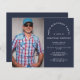 Um valor para o alternativo do ORÇAMENTO em tamanho menor de 4,5 x 5,6" de semirbrilho de 110 lbs, que é de espessura semelhante a um cartão postal (no entanto, não é adequado para uso como cartão postal). POR FAVOR, OBSERVE QUE HÁ UM convite por folha. Foto do Orçamento 50º Convite para Marinhos de Festa de aniversário. Um design totalmente personalizável, basta substituir a foto de amostra por sua própria e personalizar o texto para seus detalhes. Você também pode alterar o plano de fundo azul do marinho em ambos os lados e a cor e estilo do texto, se desejar, por meio da opção Personalizar Mais.