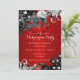Convite de aniversário Red & Silver Mascarada. Máscara de diamante preto e prata bonito e joias de penas. Por favor, note: todas as imagens planas! Use para qualquer idade.