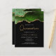 Este convite da tenda quinceañera apresenta uma imagem aquosa de um geode agado em tons de verde com falsos realces de ouro. A palavra "Quinceañera" aparece na falsa brilha de ouro em letra decorativa moderna de escrita manual. Personalize-o com o nome do convidado de honra em texto dourado e os detalhes em branco. A mesma imagem verde agate aparece no lado oposto.