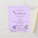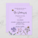 Um fundo violeta. Decorado com abelhas e pintado flores silvestres em violeta e rosa. Personalize e adicione seus nomes e detalhes. 1 folha = 1 convite impresso de borda a borda.