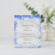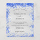 Um convite de casamento moderno, elegante e minimalista. Fundo metálico de aspecto fino prateado decorado com pó azul real de brilho. Personalize e adicione seus nomes e detalhes do casamento. Letras pretas coloridas.