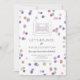 Convite de festas da casa de salto com o design da casa Lyla da Casa Branca com pontos de cor d'água roxos. Itens vendidos através da Casa Branca de Salto são recomendados para eventos temáticos de casas de salto, e são projetados para complementar qualquer e todas as opções de aluguel da Casa Branca de Salto.