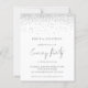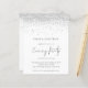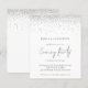 Um valor para o alternativo do ORÇAMENTO em tamanho menor de 4,5 x 5,6" de semirbrilho de 110 lbs, que é de espessura semelhante a um cartão postal (no entanto, não é adequado para uso como cartão postal). POR FAVOR, OBSERVE QUE HÁ UM convite por folha, convocado pelo Festa de Casamento Silver Glitter da Noite. Um estilo manuscrito para a festa noturna e o resto do texto que você pode personalizar facilmente. Uma borda cintilante de falso prateado está no topo de cada lado.