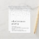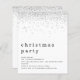 Convidar o Festa de Natal do Silver Glitter Confetti. Um alternativo de 4,5 pol x 5,6 pol com preço inferior. Disponível em um STOCK DE CARTÃO SEMI GLOSS 110 lb, que é a opção padrão (recomendada para convites), OU um STOCK DE PAPEL THINNER SATIN FINISH 80 lb (ideal para gabinetes). Os envelopes são um extra opcional e são ligeiramente maiores que o tamanho da placa. O cabeçalho é grande em na moda lowercase com os detalhes abaixo. Muito espaço em branco para uma sensação contemporânea e uma borda de brilho prateado no estilo confetti no topo de ambos os lados. Personalize facilmente o texto para seus próprios detalhes.