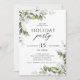 Convide amigos para comemorar a temporada com esses convites de festas de coquetel elegantes de férias verdes. Design apresenta uma ilustração aquosa de folhas verdes e flores brancas florescentes. Personalize este convite elegante com seu tipo de evento, fazer perfeito para festas, eventos corporativos, festas de coquetéis de férias.