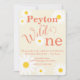 As margaridas brancas brilhantes adoram este belo convite para o primeiro aniversário do bebê. Perfeito para sua garotinha, este cartão colorido apresenta margaridas brancas dispersas com tipografia colorida de coral com um tema "Wild One". A parte traseira da carta é vermelho/laranja coral com margaridas brancas. Personalize o nome e os detalhes da festa. Este design de capricho está disponível em itens de festa de aniversário correspondentes.