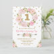 O primeiro convite de aniversário, doce e feminino, com a cor-de-rosa e a cor-d'água, a cor-de-rosa, e os esférulas dourados.