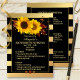 O modelo de um programa de convite para o fim de semana das caçadas ou solteiras, com girassóis, folhas de outono e rosa de ouro floral, num fundo listrado de ouro. Você pode personalizar e substituir o plano de fundo preto por outra cor de sua escolha. Para todas as opções, escolha o editor avançado.
