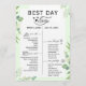 Celebre o seu grande dia com este elegante Convite do Programa de Casamentos do Melhor Dia Verde. Possui um layout claro de linha do tempo com sotaques botânicos esmagadores. Perfeito para casamentos modernos, mantendo os convidados informados e comprometidos. Uma mistura na moda da natureza e design mínima para o seu dia especial.