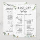 Celebre o seu grande dia com este elegante Convite do Programa de Casamentos do Melhor Dia Verde. Possui um layout claro de linha do tempo com sotaques botânicos esmagadores. Perfeito para casamentos modernos, mantendo os convidados informados e comprometidos. Uma mistura na moda da natureza e design mínima para o seu dia especial.