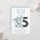 Este convite apresenta um elefante azul para uma quinta festa de aniversário. A parte de trás do convite tem um padrão de gingham azul; perfeito para a festa de aniversário de 5 do tema animal da selva do menino. Personalize o convite com seus detalhes e você tem as opções para comprar convites impressos ou um download digital.