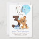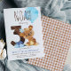 Este terceiro convite para festas de aniversário apresenta um ursinho de pelúcia com chapéu de festa azul. A parte de trás do convite tem um padrão marrom de gingham; perfeito para a aniversário de 3 anos do tema animal da floresta de menino. Personalize o convite com seus detalhes e você tem as opções para comprar convites impressos ou um download digital.