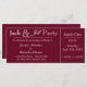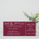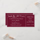 O convite vermelho de morango profundo foi projetado para festas de chá de casamento Jack e Jill. O lado esquerdo do convite tem um lugar para a noiva e os nomes dos noivos e o local do evento. Personalize com seu próprio texto e informações. O lado direito do convite é separado com uma linha pontilhada para cortar e usar como um stub de ingresso para a entrada paga à parte. Personalize com seu próprio preço, data e hora. Este é um convite perfeito para usar como bilhete para festas de chá de casamento Jack e Jill!