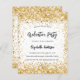 Um fundo branco na moda. Decorado com pó sujo de ouro. Personalize e adicione um nome e detalhes da parte. O nome é escrito com um script de estilo manuscrito 1 folha = 1 convite