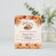 Um fundo rosa dourado, cor-de-rosa-claro. Decorado com flores laterais e laranja vintage e um chapéu de vaquinha com flores. Personalize e adicione um nome e detalhes da parte. Texto curvo: Cair no amor 1 folha = 1 convite impresso de ponta a borda.