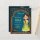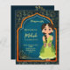 Mehndi Orçamento / padrões paisley árabe indígena de Sangeet, convite de cor verde design.